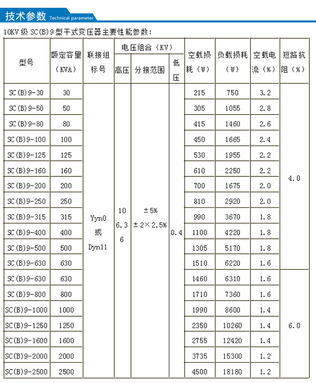 【額定容量】:30-2500kva      【額定電壓】:10kv