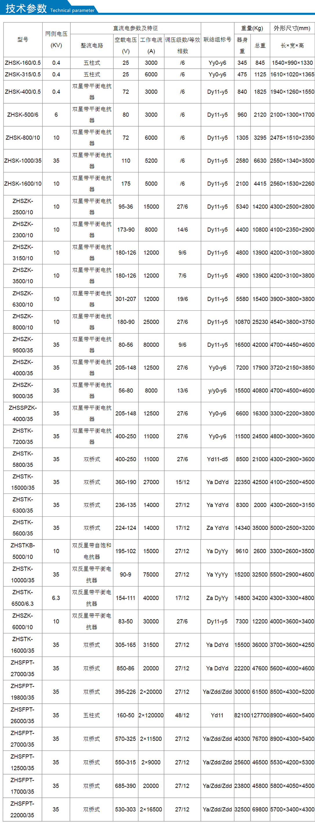 1、閥側電壓不大于1000V,電流可高達100KA 。